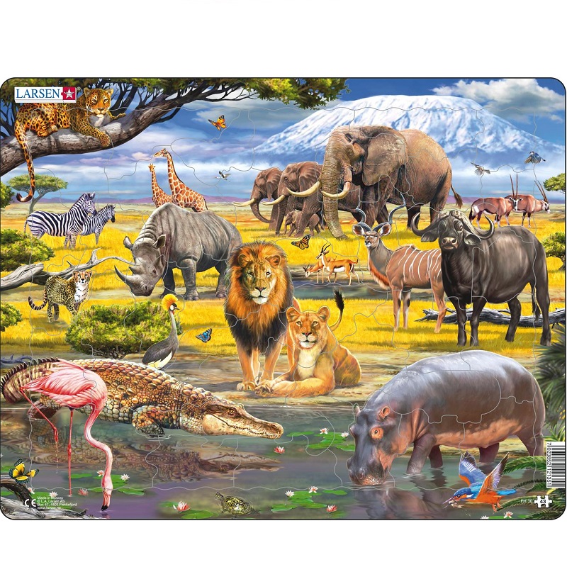 Aafrika savanni veesilm on alati põnev ja populaarne koht paljude loomaliikide tabamiseks. Flamingod naudivad vees ääres sulistamist, pühvel, antiloop ja sebrad külastavad vett ka päeva kuumal ajal joogi saamiseks. Kelle leiad mängimas puuvõras ning mitu uut linnuliiki sinu silm tabab?