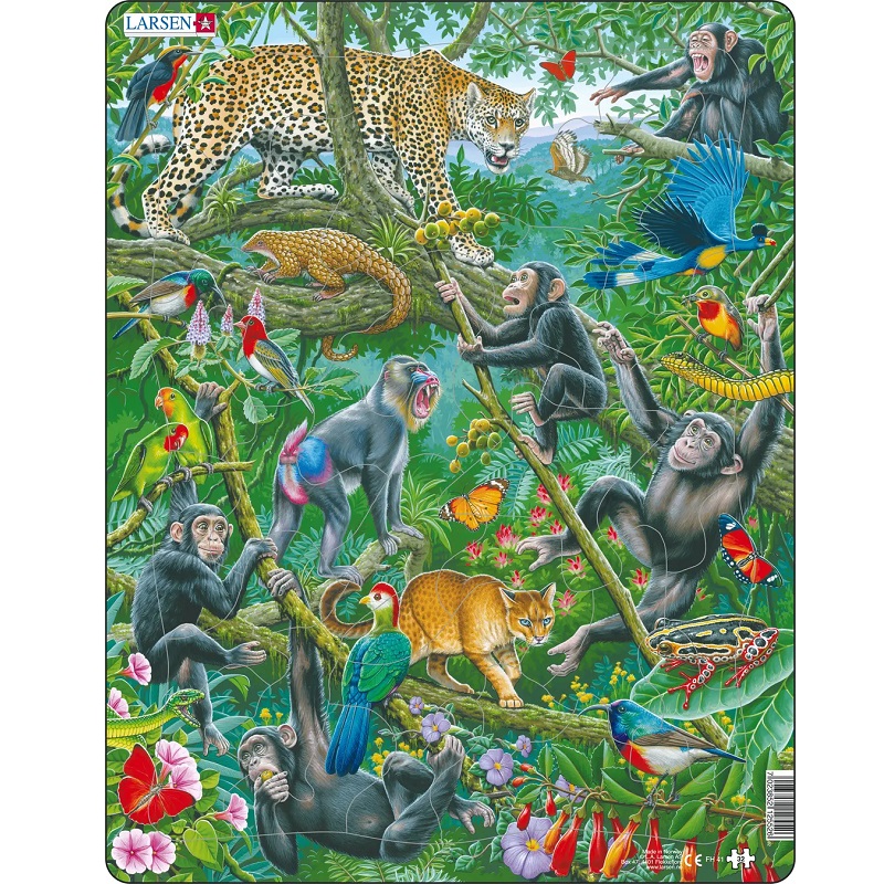 Aafrika vihmamets on looduslik varjupaik paljudele ainulaadsetele taimedele ja loomadele, keda mujal maailmas ei leidu. Šimpanside perekond mängib puude vahel, Aafrika kuldne kass varitseb Kongo konna, samal ajal kui punaharjaline turaco jälgib. Kas leiate kotka, kes lendab läbi vihmametsa puude?