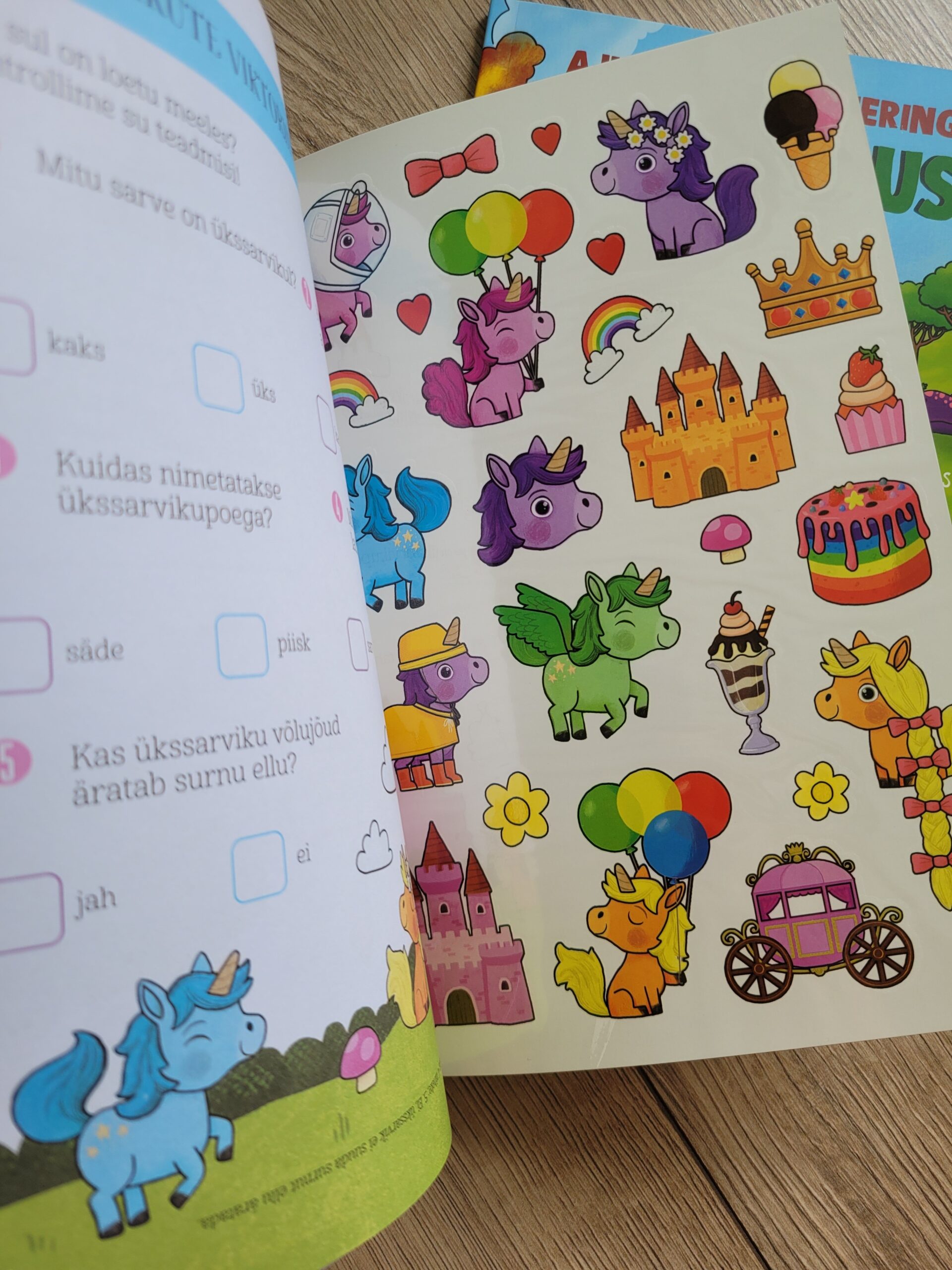 Vahva töövihik kaasahaaravate ülesannetega ja lisaks leiad lahedad ükssarvikutega ajutised tätoveeringud.