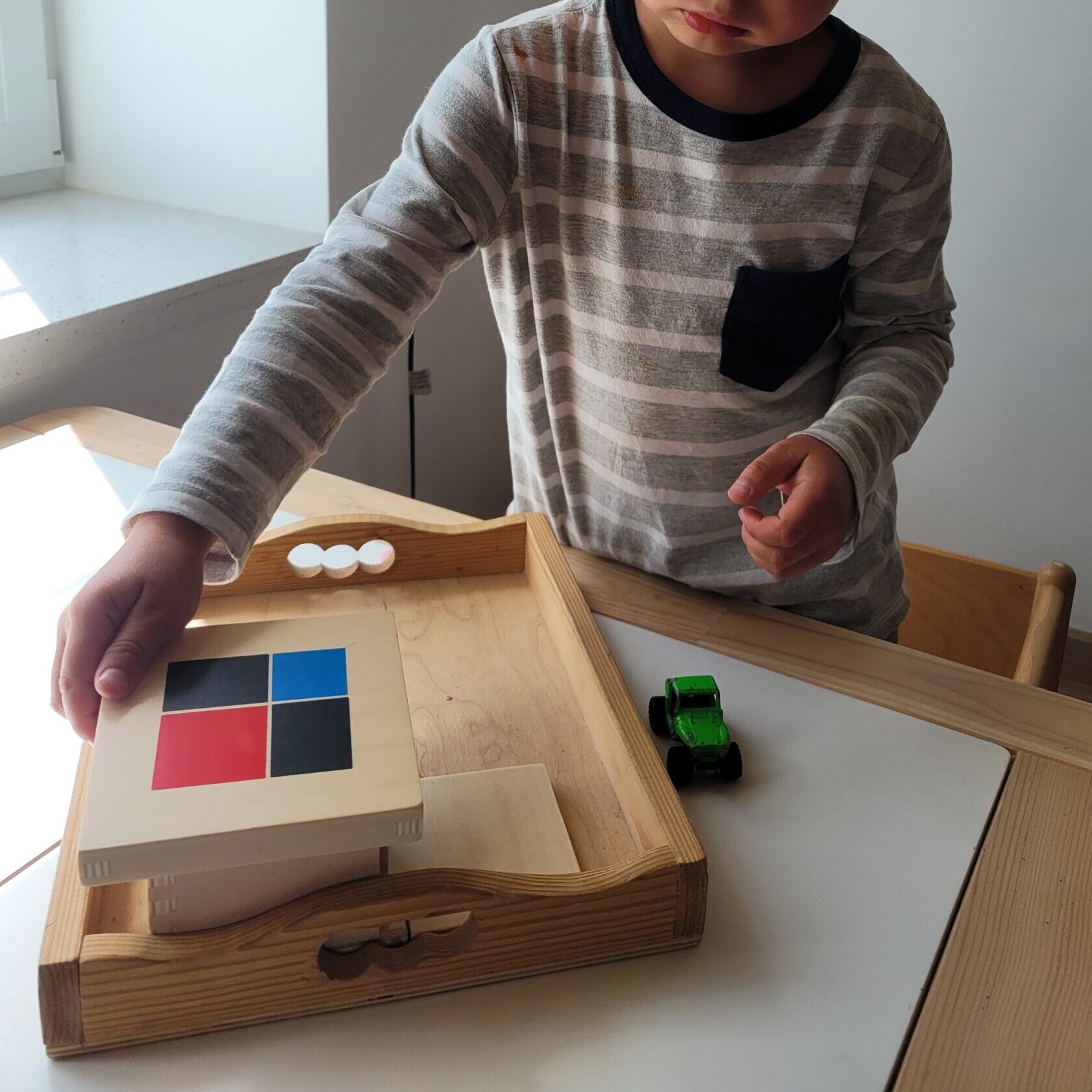 Lihtsamaks kokkupanekuks sorteeritakse kuubikud või prismad värvi järgi. Puitkasti kaas pakub abi ja on lapsele kontrollmehhanismiks, sest õige paigutus on märgitud kaanele.