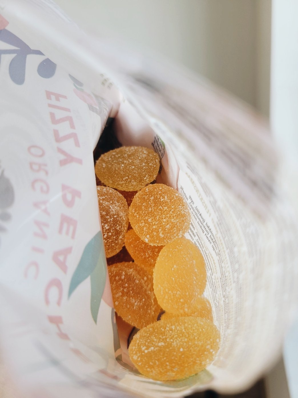 Koostisosad: Glükoosisiirup*, suhkur*, želeeriv aine (pektiin), hape (õunhape , sidrunhape), happesuse regulaatorid (naatriumtartraadid), looduslik kurkumi maitseaine*, virsiku maitseaine, värvaine: musta porgandi mahla kontsentraat*.