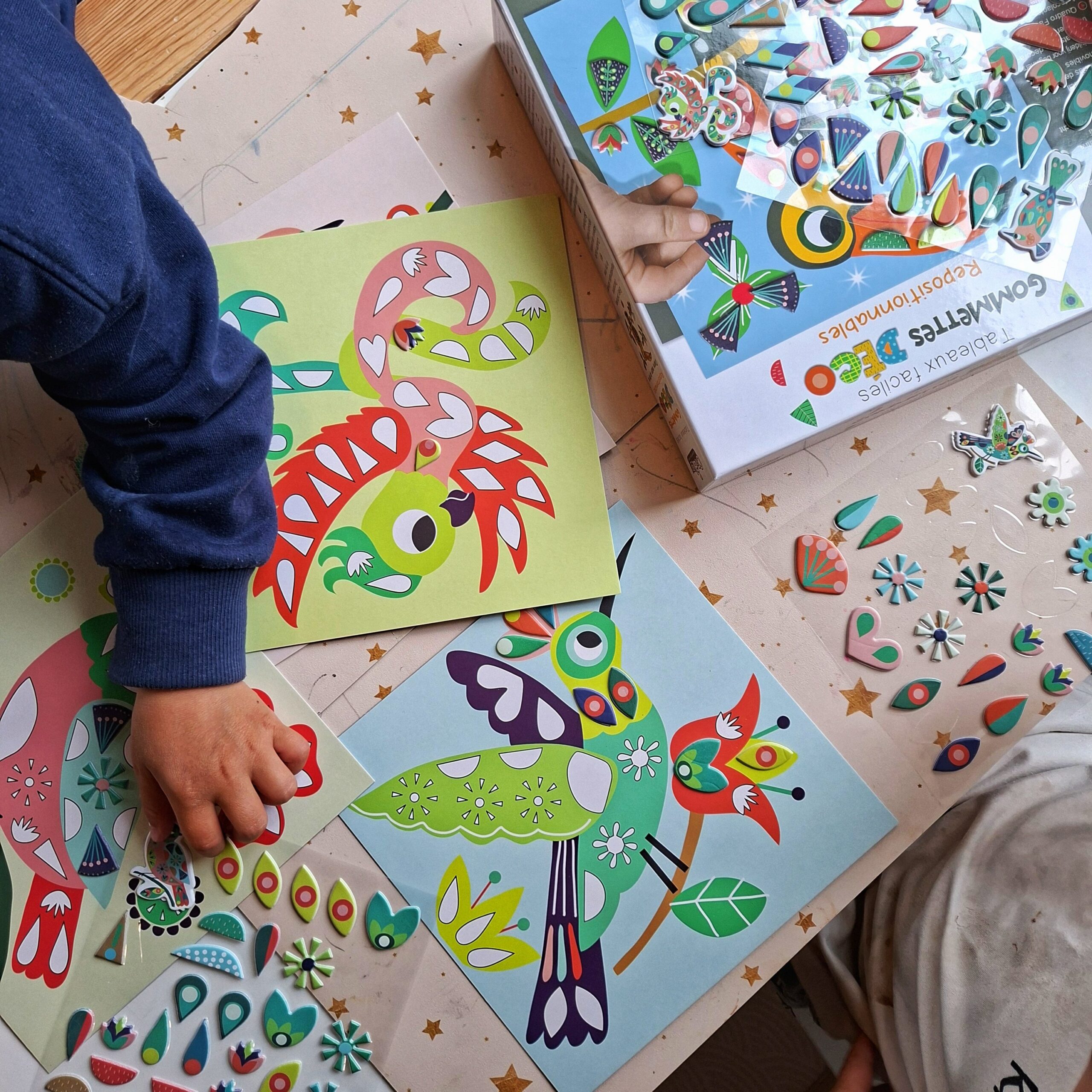 Komplektis olevad paksud geomeetrilised kleepsud on kergesti paigutatavad, mis teeb meisterdamise lihtsaks ja nauditavaks. Laps saab kujundada värviküllaseid linnuteemalisi pilte, mille loomisel harjutatakse täpsust, tähelepanelikkust ja koordinatsiooni.