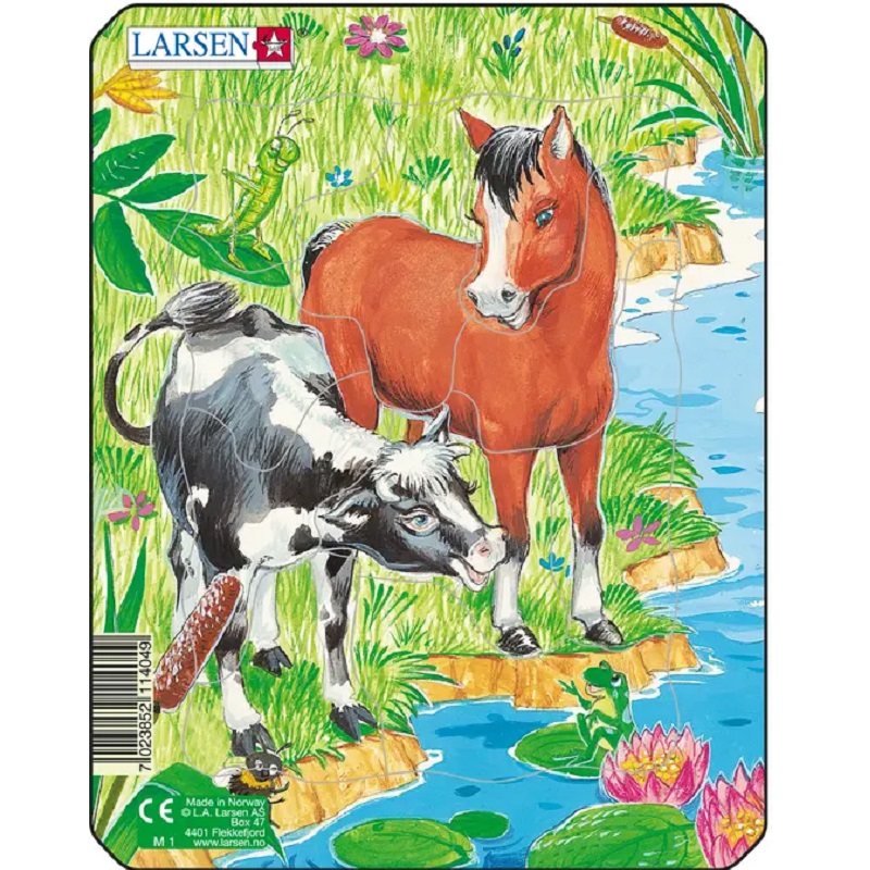 Laps õpib, harjutab ja treenib loomade tundmist selle armsa puslega vasikast ja hobusest.
