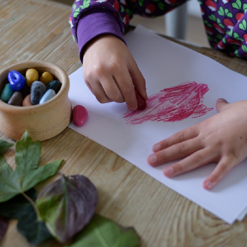Toote avapildil on joonistamiseks kasutatud meie looduslikke kriite Crayon Rocks, mille kuju ja suuruse on hoolikalt paika pannud erialaspetsialistid, et need sobiks just lapse käe haardega ja edendaks pliiatsihoidu. Kriitide ooduslikest koostisosadest tulenevad värvid on pehmed ja soojad ning nende abil on loodav kunst väga loomutruu.. Leiad lastele loodud Crayon Rocks kriidid siit.