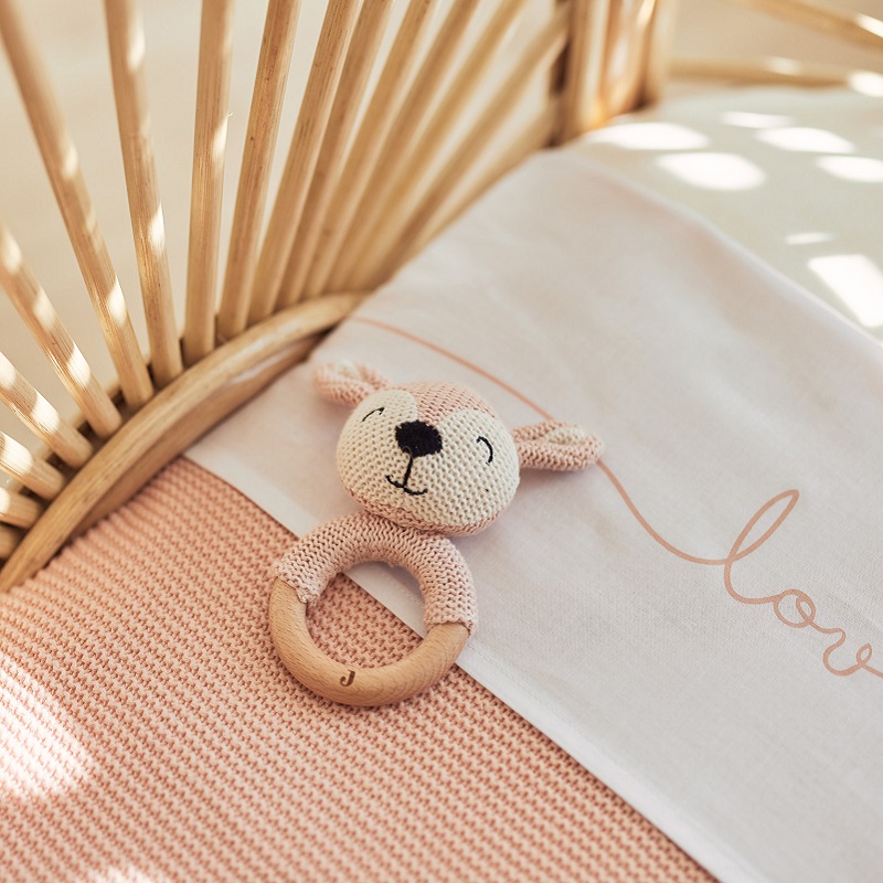 Materjal: rõngas 100% pöökpuit ega sisalda kahjulikke aineid; loom on 100% puuvill, sisemus polüester. Looma sees on metallist kelluke.