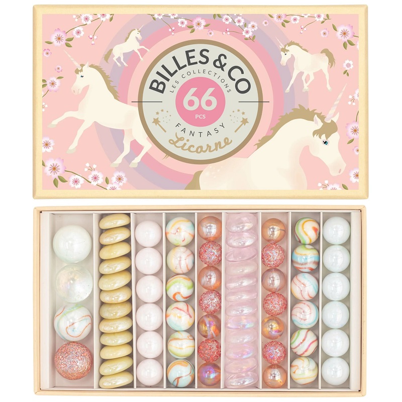 Tootekood: klaaskuulid-billes-BOX-06-Licorne - EAN 3760338460293-ükssarvikud-suur Kategooriad: , , ,