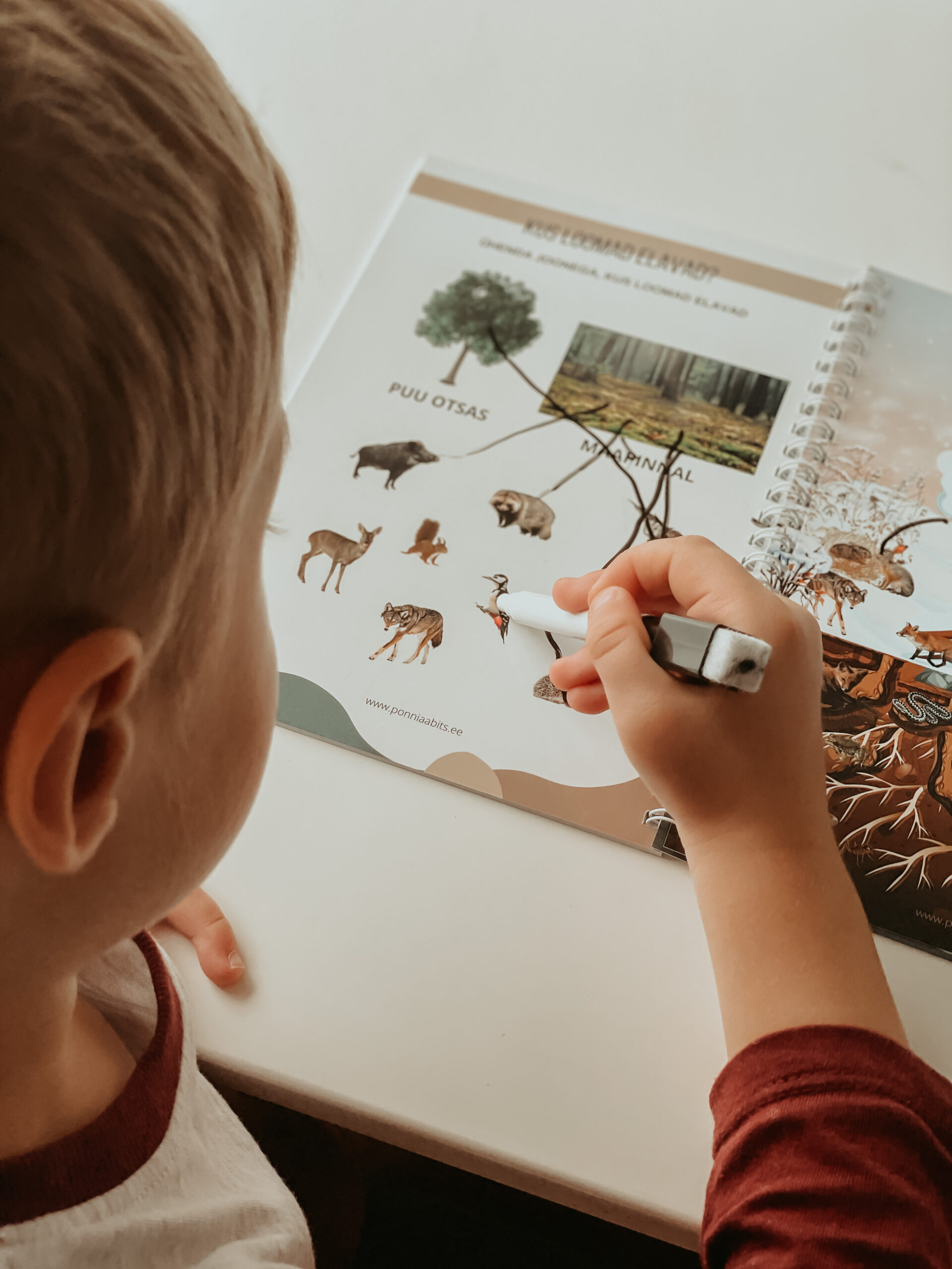 Korduvkasutatav tegelusvihik, kus harjutused on suunatud märkama loomi Eesti looduses.