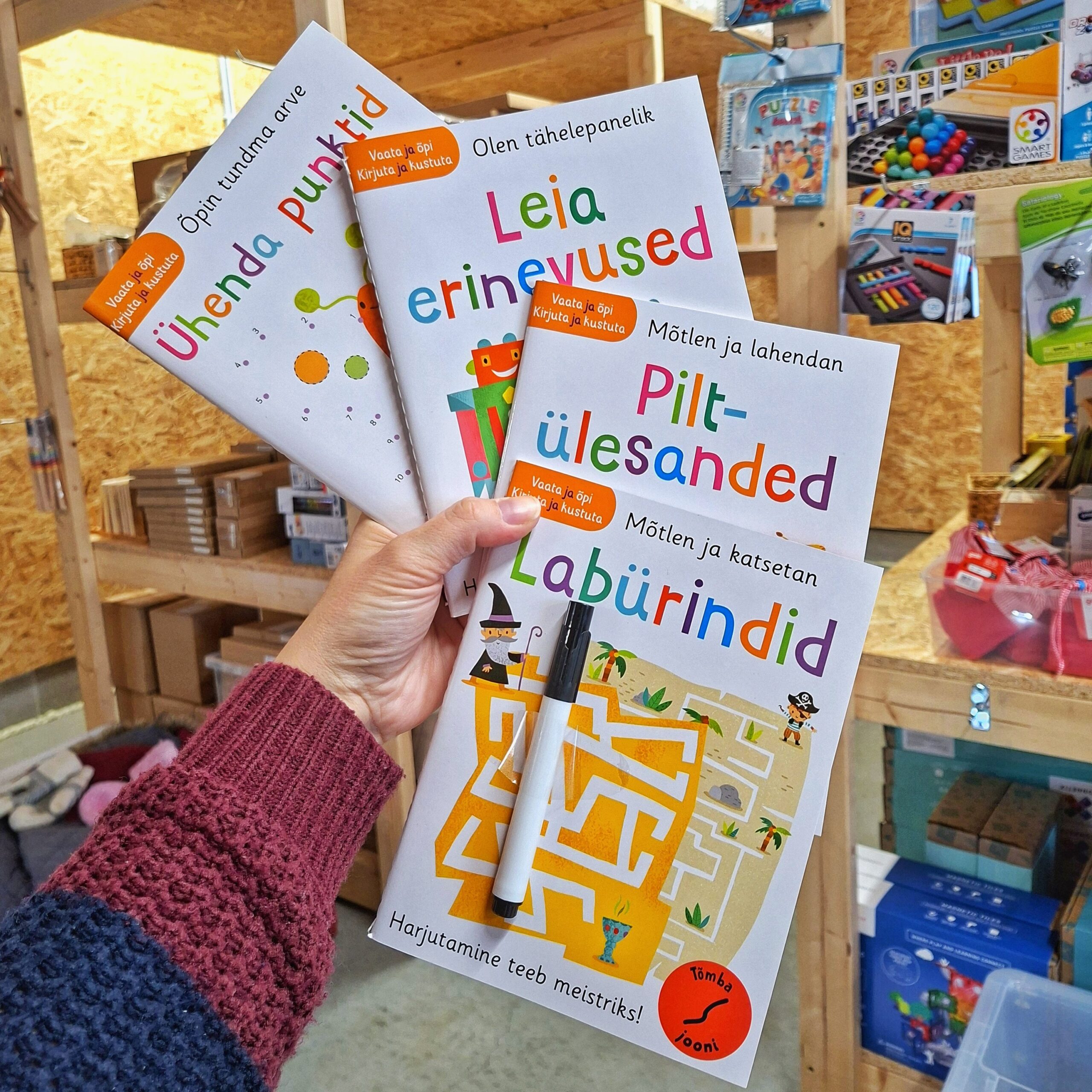 Töövihikud pakuvad palju erinevaid tegevusi – otsida erinevusi, läbida labürinte, leida paare ja kirjutada üle sõnu, aidates samal ajal õppida arve, loendamist ja kujundeid.