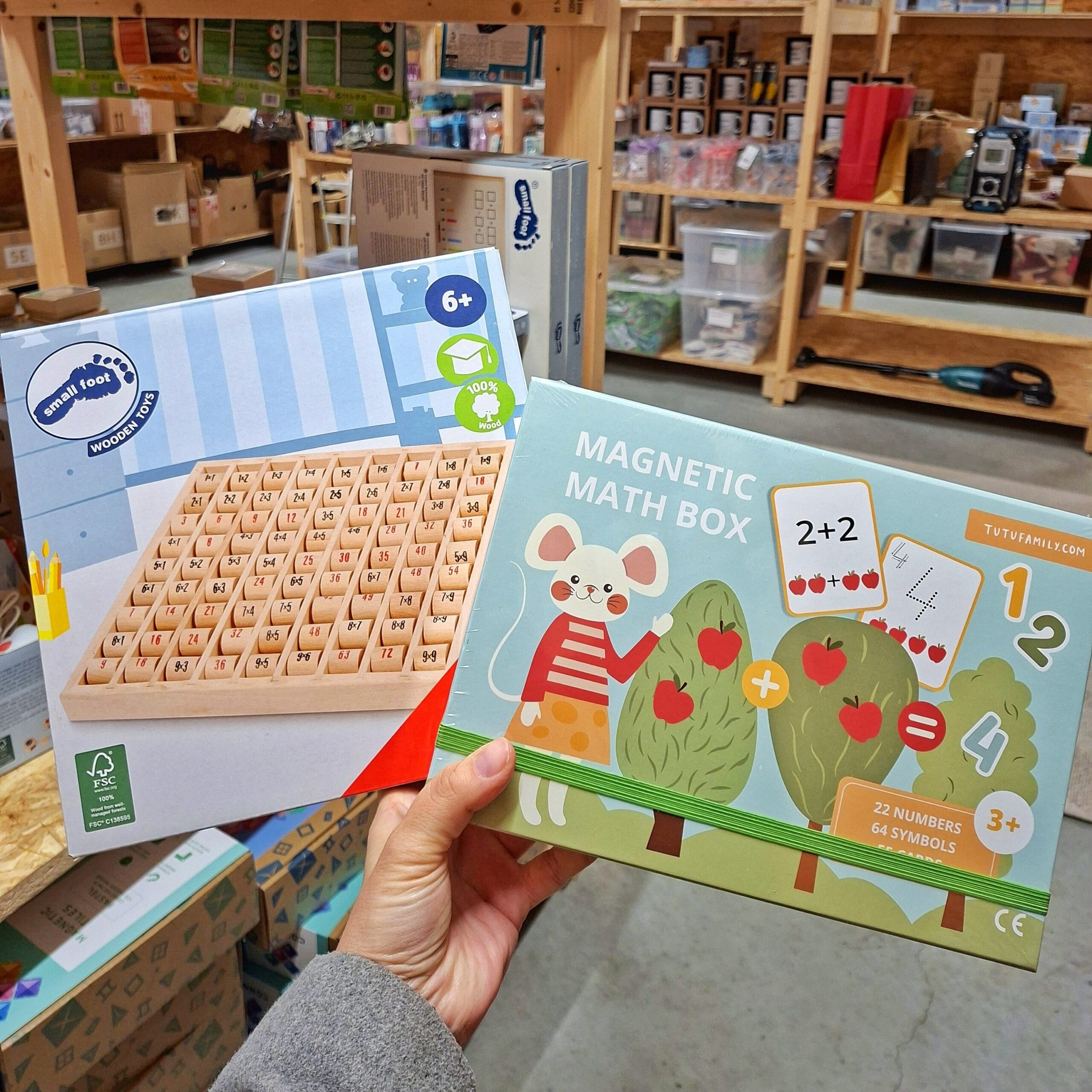 Puidust alusel korrutustabel! See on täis matemaatilisi kuubikuid, mis toetavad lapsi nende esimestel avastustel arvude maailmas ja lahendada korrutamisvõrrandeid. Võrrandi õige vastus on kuubiku vastasküljel ning laps saab leida õige asukoha korrutustabelis. Neli kuubiku külge on tühjad ning neid saab täita soovi korral enda võrranditega. See on pedagoogiliselt väärtuslik õppevahend, mida saab kasutada väga mitmekülgselt nii koduses keskkonnas kui ka rühmaruumis!