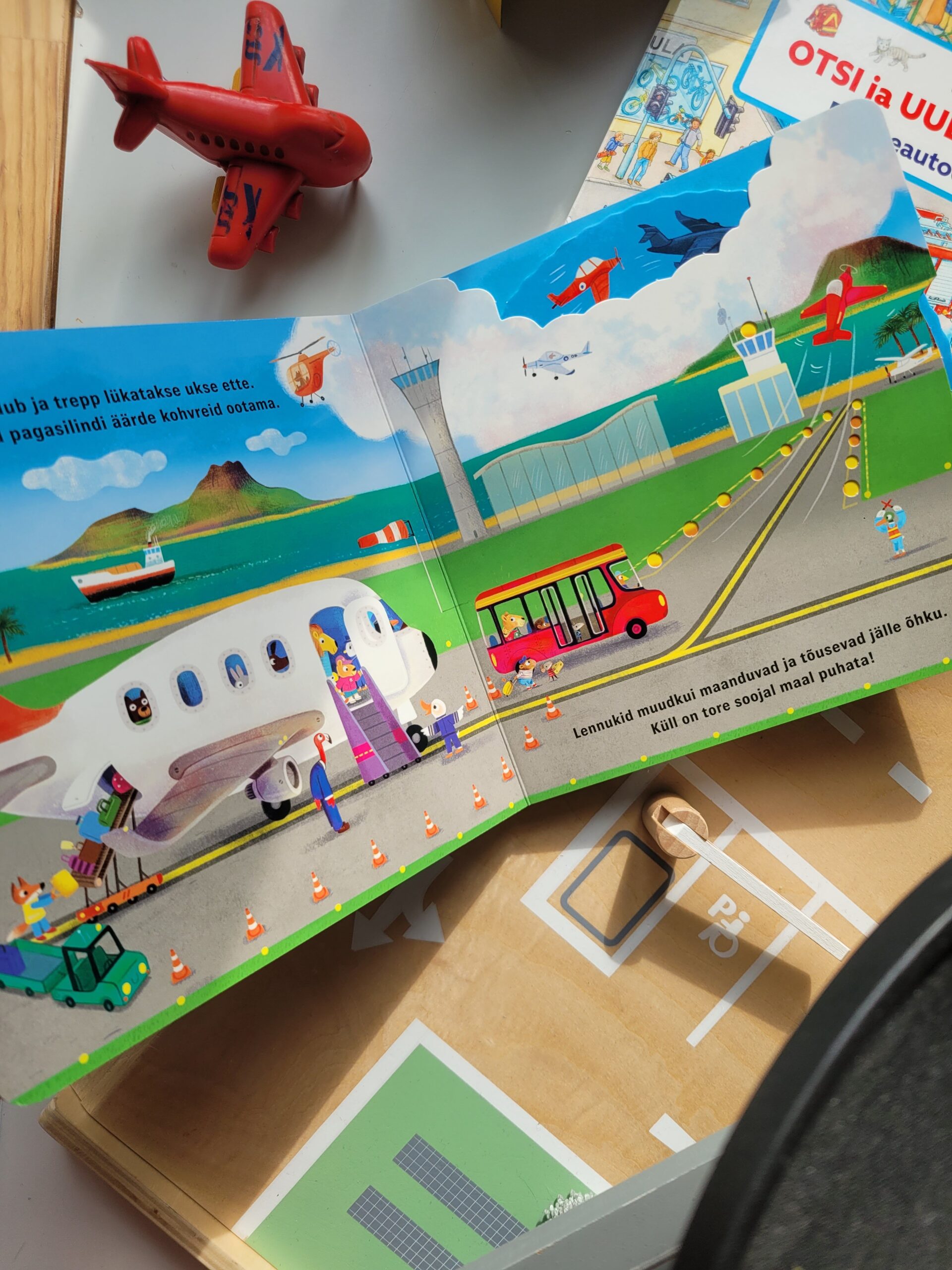 • Liikuvate detailidega raamat "Lennuk" lennureisist reisile beebi väikelaps reisima reisihirm lennuhirm