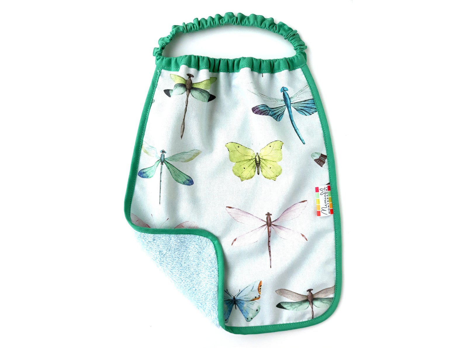 Valmistatud käsitööna kvaliteetsest veekindlast ja 100% orgaanilisest kangast, millel on OEKO TEX sertifikaat. Pealmine kangas on lamineeritud, mis tagab veekindluse ja samas säilitab materjali omadused ega tee seda jäigaks. Tagumisel küljel on imavuse suurendamiseks 100% froteekangas.