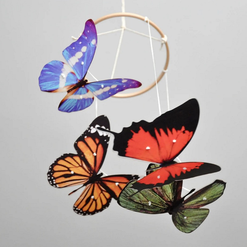Realistlike liblikatega õhukarussell – 8-13 nädal. Loomulik liikumine ja fokuseerimise oskuse arendamine.