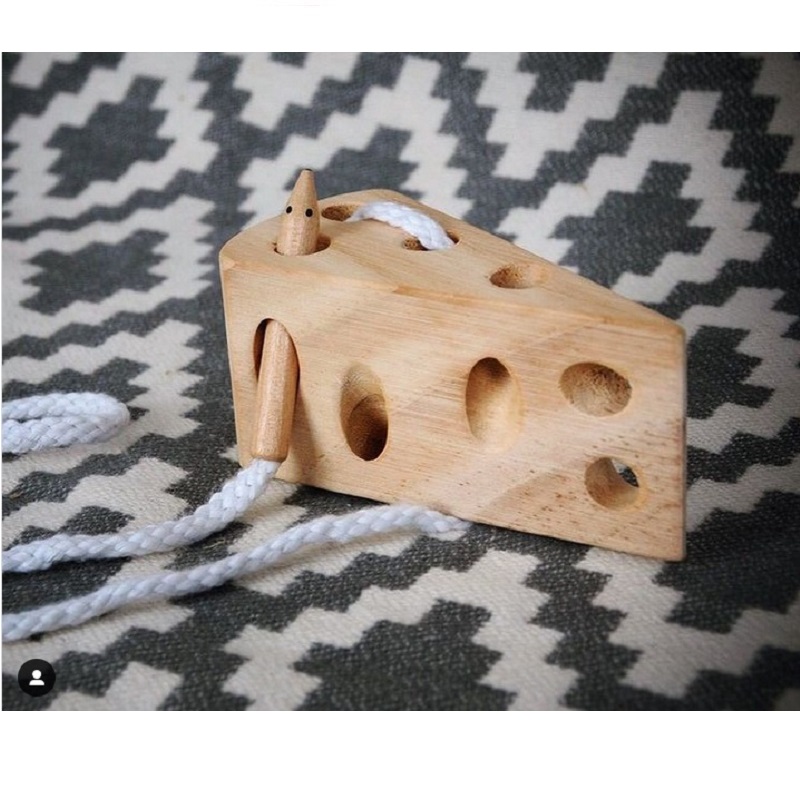 Selle vahva juustu ja hiire nöörimismänguga saab laps lõbusalt ja kiirelt nöörida. Märkamatult teeb laps arendavaid harjutusi eelseisvaks kirjutamise ja õmblemise õppimiseks. Toode arendab lapse sõrmede osavust, silmade ja käte kordinatsiooni. Sellel mängul on hariduslik väärtus, aidates arendada loovust ja motoorseid oskusi ning samal ajal stimuleerides ruumilist mõtlemist.
