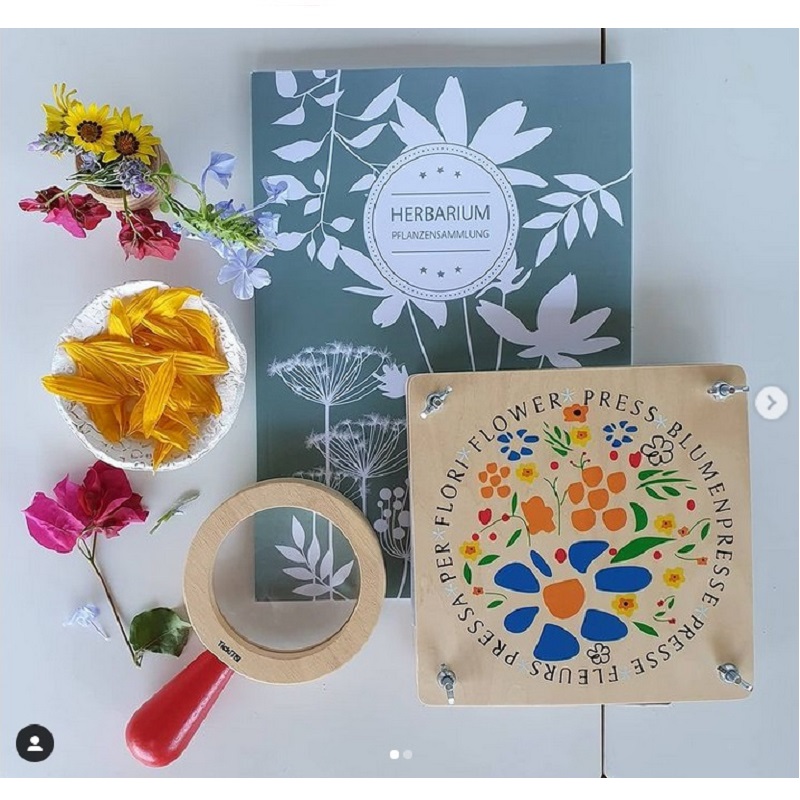 Õppige koos lapsega uusi taimi, looge kuivatatud lilledest kunstiteoseid ja meisterdusi või alustage omaenda herbaariumiga! Selle puidust lillepressiga saab lehti ja lille kroonlehti hõlpsalt kuivatada ja säilitada. Aiast, metsast ja põldudelt kogutud aarded asetatakse lihtsalt kahe puitpaneeli vahele tiibkruvidega ja nende pikaealisus suureneb. See tähendab, et saate neid kauem nautida ja lapsel on meisterdamiseks või kaunistamiseks piisavalt materjali igal ajal!
