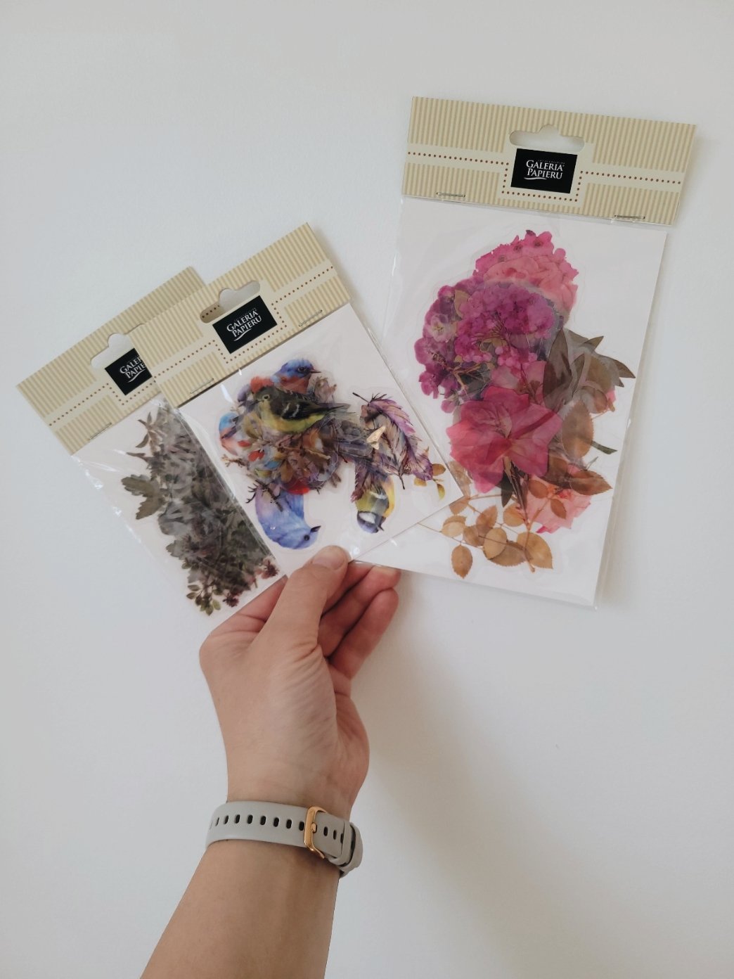 Need lilledega kleepsud on eriti efektsed ja realistliku muljega tänu läbipaistvale äärele. Taimekleepsud näevad välja just nagu kuivatatud ning pressitud päris taimed, erinevad roosid ja hortensiad on väga kaunid!