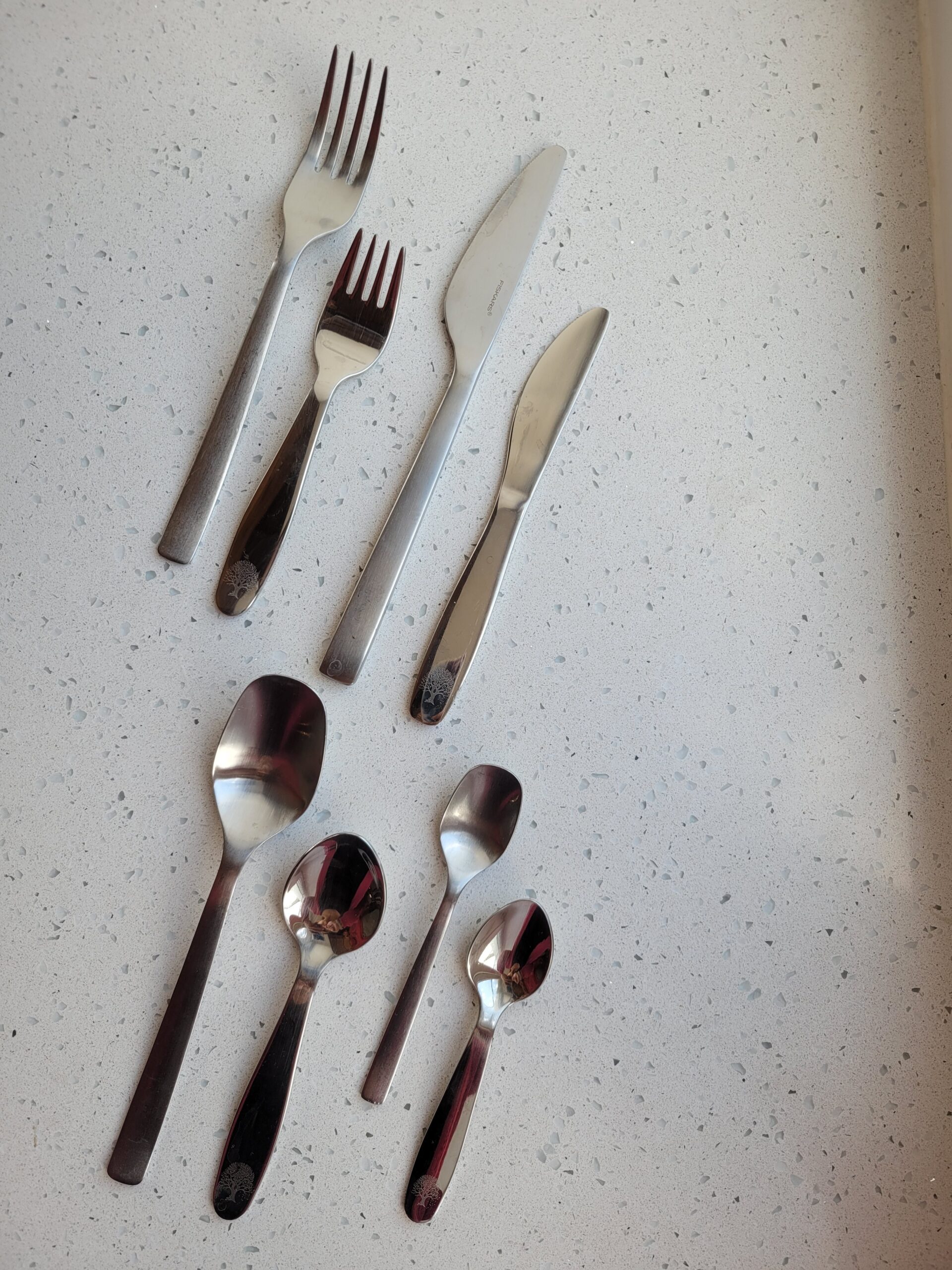 Kolmandal pildil on söögiriistad võrdluses klassikaliste Fiskars täiskasvanute söögiriistadega.