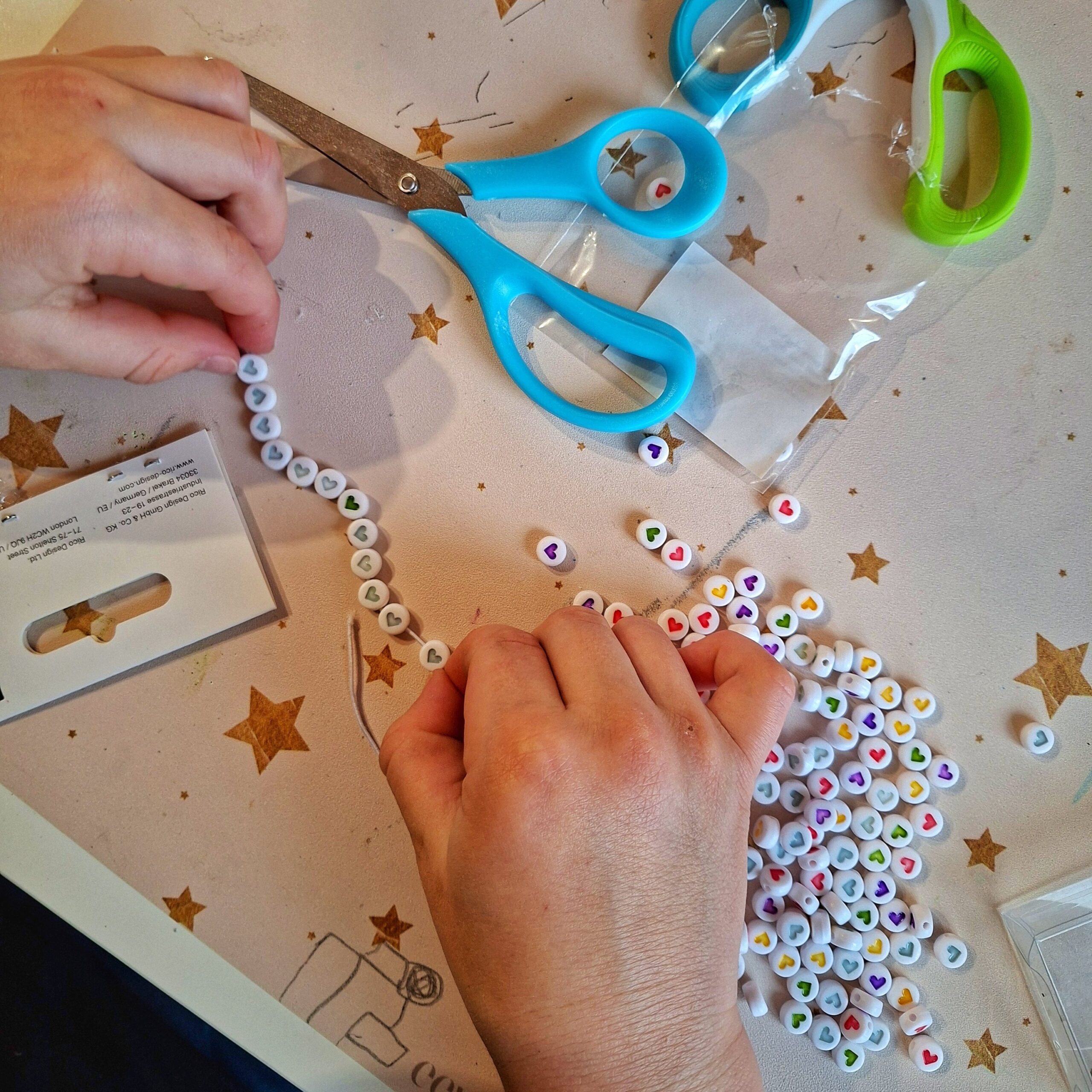 • Peenmotoorika ja loovuse arendamine: Helmete paelale ajamine arendab käe-silma koordinatsiooni ja peenmotoorikat.