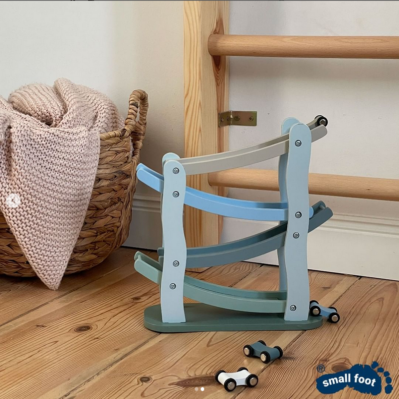 Puidust autorada, mis arendab konstruktiivset ja ruumilist mõtlemist (kuidas saada auto veerema), nägemist (auto liigub ülevalt alla ja küljelt küljele) ning loomingulisust (mis juhtub, kui midagi rajale ette panna vms). Kaasas on puidust autod, mis liiguvad mõlemat pidi kiirelt rajalt alla.